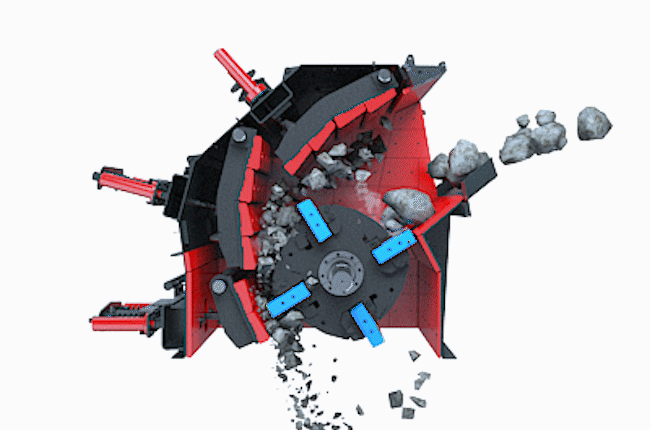 反擊式破碎機(jī)是一種利用沖擊能來(lái)破碎物料的破碎機(jī)械。本機(jī)工作時(shí),在電動(dòng)機(jī)的帶動(dòng)下轉(zhuǎn)子高速旋轉(zhuǎn),物料進(jìn)入板錘作用區(qū)時(shí),與轉(zhuǎn)子上的板錘撞擊破碎,后又被拋向反擊裝置上再次破碎,然后又從反擊襯板上彈回到板錘作用區(qū)重新破碎,此過(guò)程重復(fù)進(jìn)行,物料由大到小進(jìn)入一、二、三反擊腔重復(fù)進(jìn)行破碎,直到物料被破碎至所需粒度,由出料口排出調(diào)整反擊架與轉(zhuǎn)子之間的間隙可達(dá)到改變物料出料粒度和物料形狀的目的。