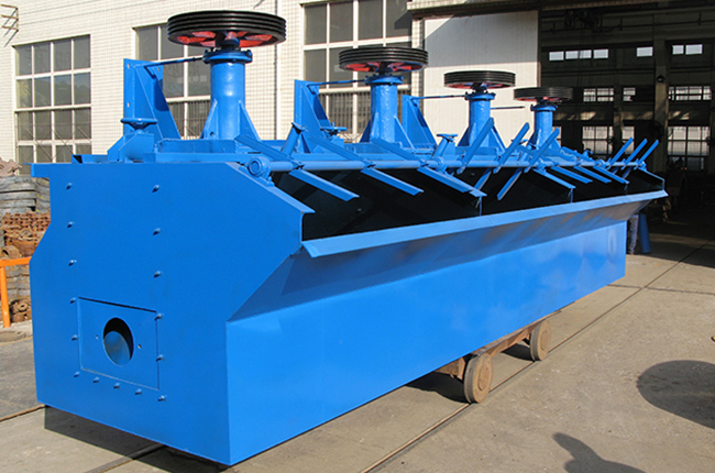 浮選機主要用于選別金、銀、銅、鐵、鉛、鋅、鉬、鎳、鋁等金屬礦物。也可以用于黑色金屬和非金屬的選別。該機由電動機三角帶傳動帶動葉輪旋轉,產生離心作用形成負壓一方面吸入充足的空氣與礦漿混合,一方面攪拌礦漿成藥物混合,同時細化泡沫,使礦物粘合泡沫之上,浮到礦漿面再形成礦化泡沫。調節(jié)閘板高度控制液面,使有用泡沫被刮板刮出。